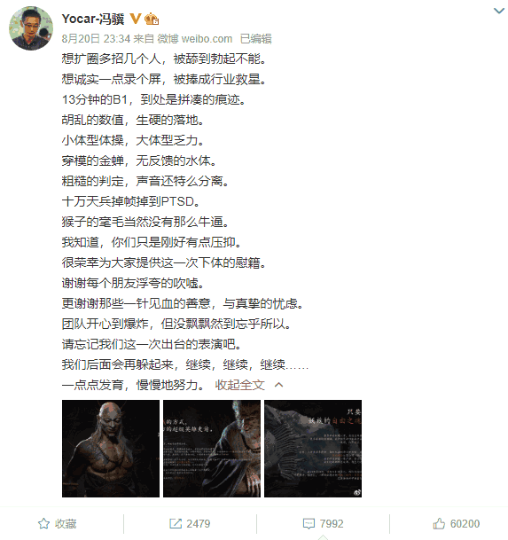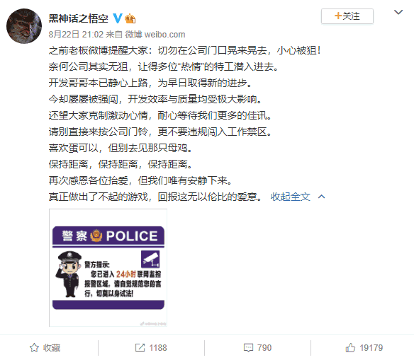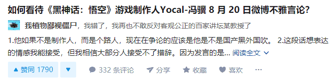 所以我心想,这波应该稳了。可结果就是这么一条微博,又让游戏科学陷入了新的舆论焦点之中。