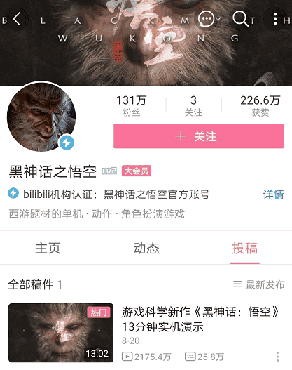 显然,现在舆论场的范围,已经不是游戏科学自己就可以控制得住的了。发酵的速度,也完全超出尤卡的预估。仅凭一个视频,《黑神话:悟空》的官号2天内就成了B站的百万UP主,就能想象这场狂欢到底来得有多迅猛,观众视线聚焦的有多集中。