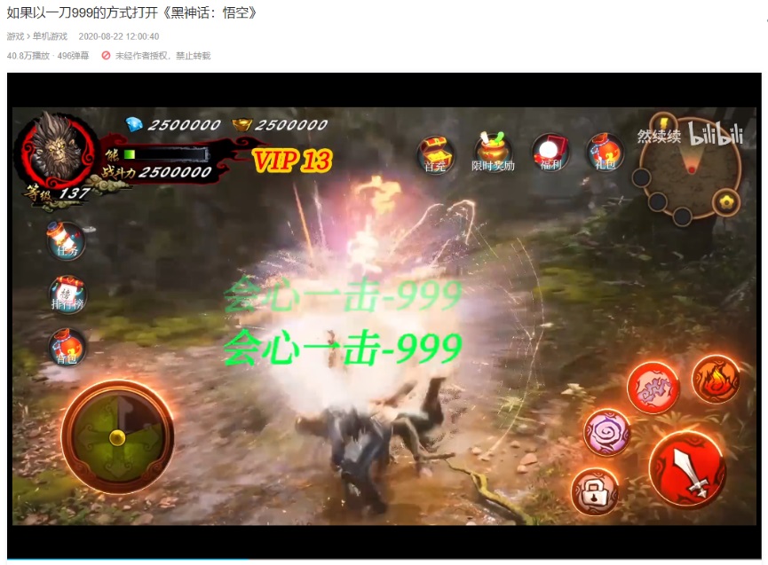 对比下来,你就得可以知道《黑神话:悟空》的对于玩家的冲击力到了一种什么程度。我愿称其为「黑猴症候群」。