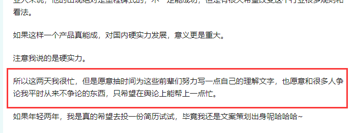 但不管是朋友圈,还是知乎论坛,同行的字里行间,无不是羡慕与感动。没有质疑,没有猜忌,没有一些不着边际的阴谋论。