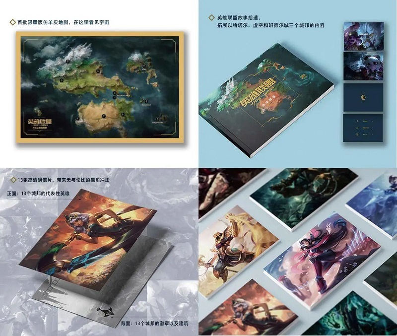 有别于同类设定集,《英雄联盟:符文之地的故事》还包含一套限量版羊皮地图、中国版特制内容和13张英雄人物高清明信片,明信片表面运用磨砂工艺,这些细节也让其收藏价值抬高了不少。
