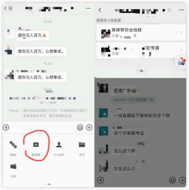 我们观察了几天各种动态,发现了数种微信群直播的可能玩法。