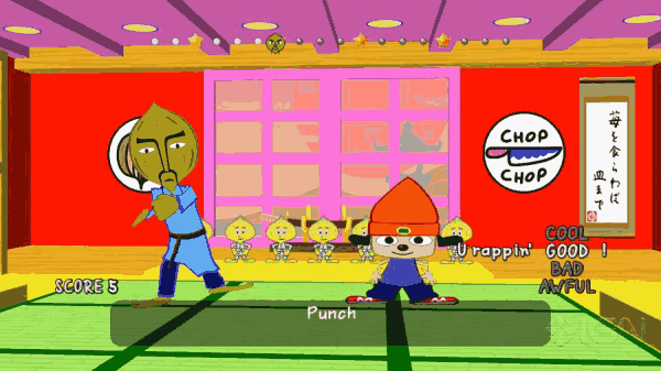 七音社的《动感小子(PaRappa the Rapper)》并非第一款需要玩家通过屏幕提示,紧随节奏按键的电子游戏。比如早期 Bandai 推出的 NES 跳舞毯游戏《有氧跳舞(Dance Aerobics/エアロビスタジオ)》,就是 Konami《劲舞革命》等作品的鼻祖,本作于 1987 年在日本首发,比《动感小子》早了近十年。《动感小子》也并非首款将音乐融入游戏核心的作品,任何不幸在 1992 年收到《Marky Mark and the Funky Bunch: 打造自己的视频》作为圣诞礼物的玩家都能够作证。