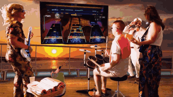不过,Harmonix 的《卡拉 OK 革命》吸引了加州游戏与配件公司 RedOctane 的注意,这家加州游戏公司当时已经在为现有的游戏生产第三方配件,比如跳舞毯等等。正是这两者的合作将音乐游戏带入了最辉煌的年代。