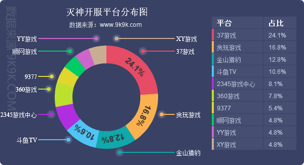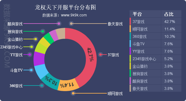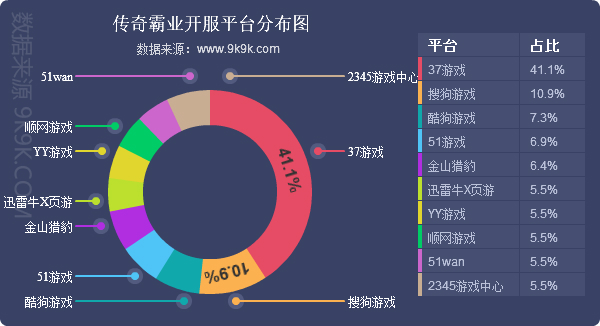 点评:本月《龙权天下》开服总数较上月增涨5.8%,新增分布占比平台酷狗游戏、傲天游戏等一线平台。