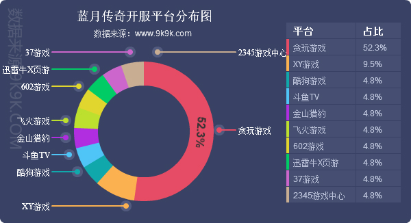 点评:本月《蓝月传奇》开服总数有所减少,但整体开服形势相对稳定,在各平台占比情况保持不变。