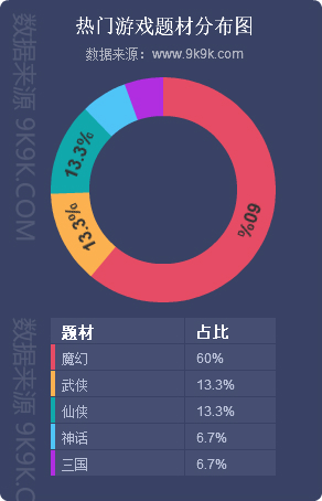 综述:本月热门游戏题材方面的魔幻类仍占市场主流,神话题材回归;在画面上则依旧是2D画面为主;新游戏题材方面分布不再以武侠、魔幻类为主,奇幻类题材游戏出现,此外市场上游戏画面仍以2D为主流,即时制类游戏更受玩家喜爱。
