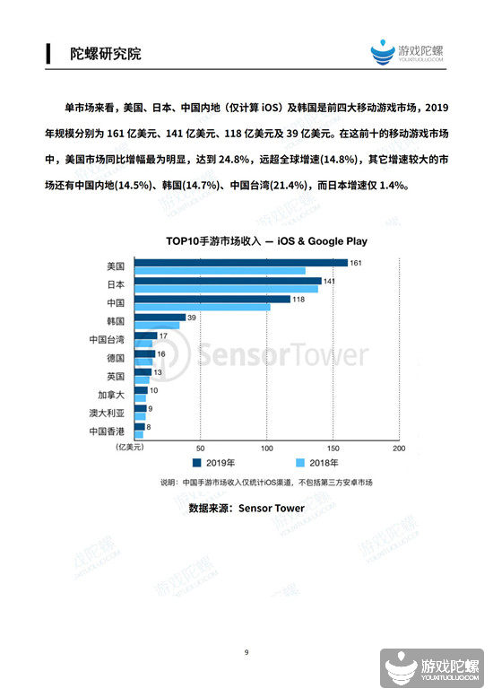 具体到每个市场,除日本外,前五大手游市场同比增速超14%,尤其是美国增速高达24.8%达到161亿美元。