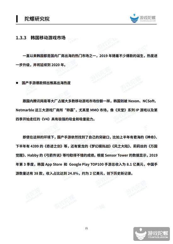 导语:2020年1月22日,陀螺研究院联合Sensor Tower共同发布《2019中国移动游戏产业发展报告》,本次带来的是报告中《海外篇》的详细内容。