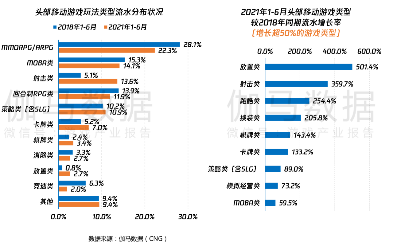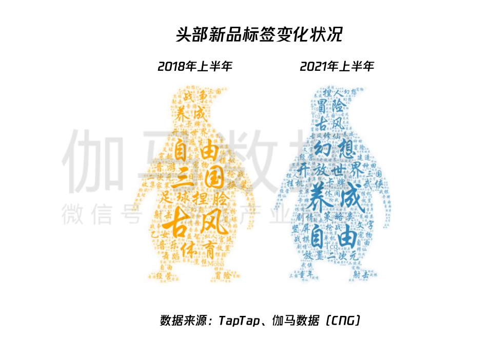 与2018年同期相比,2021年上半年游戏玩法以及题材均发生了不小变化。