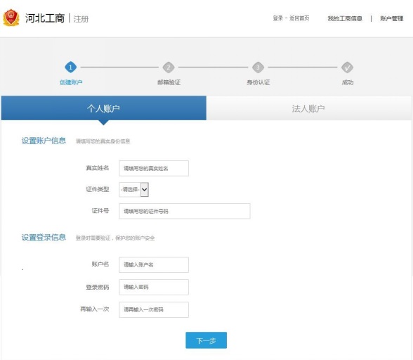 注册当地的工商局网站账号,按提示完成各项认证