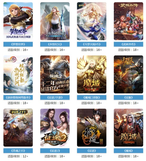 平台上线的同时,还公布了一批参与适龄提示的游戏产品,它们是:完美世界《武林外传》《深海迷航》《面条人》、三七互娱《永恒纪元》《斗罗大陆》、创梦天地《机械迷宫》《纪念碑谷》《地铁跑酷》、多益网络《梦想世界》、西山居《剑网3 指尖江湖》《剑侠情缘网络版叁》、网龙《魔域》《魔域口袋版》《英魂之刃》《英魂之刃口袋版》《征服》《开心》、巨人网络《征途》《征途2》《征途2手游》、四三九九《小小英雄》,共计21款。