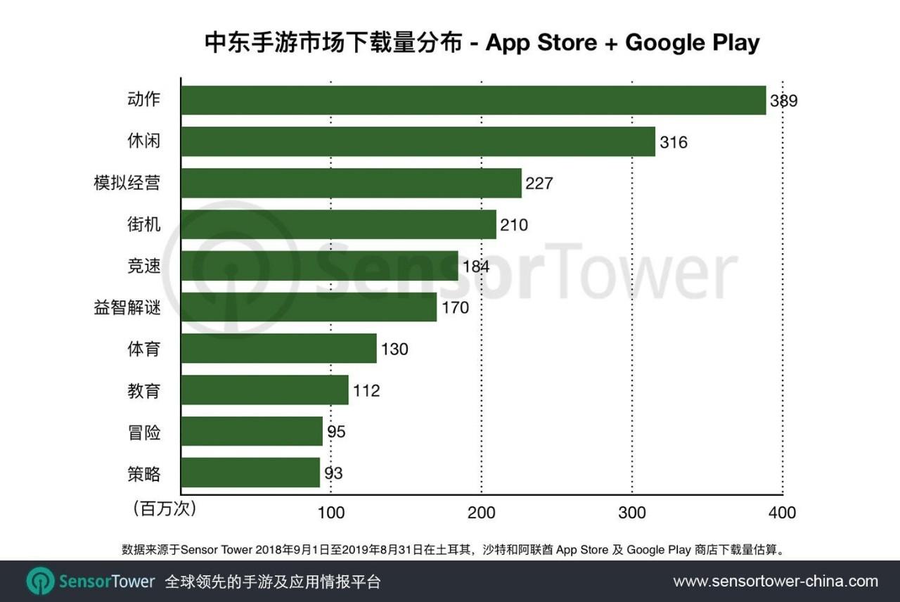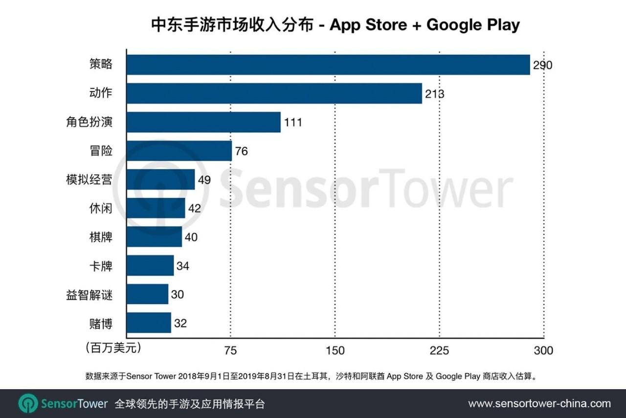 土耳其、阿联酋和沙特作为中东地区移动游戏的三大主力市场,不仅收入成绩不俗,市场发展也很迅速,于2019年8月三个市场手游总收入达到6200万美元,较2018年9月4400万美元上涨40.9%。