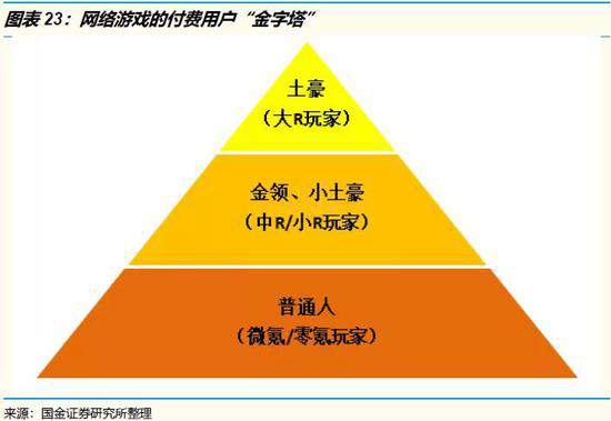 那么问题来了:经济增速的放缓,会对网络游戏的“付费金字塔”造成什么影响?首先,顶端的“土豪”肯定会受到负面影响,他们的生意和资产价值都可能缩水,从而无法负担在游戏里的庞大开支。其次,中间的金领和“小土豪”也无法免疫,动辄几千元的充值不是小数目,节省开支过冬才是合理的选择。最后,底层的微氪玩家倒是有可能稍微多花一点钱,毕竟在游戏里花几十元带来的乐趣,在现实中可能花几百元都得不到;这就是很多投资者期盼的“口红效应”。问题在于,微氪玩家本来就不是游戏流水的主力军,他们再怎么多花钱,能撑起流水大盘吗?