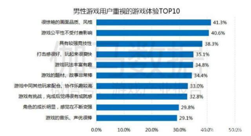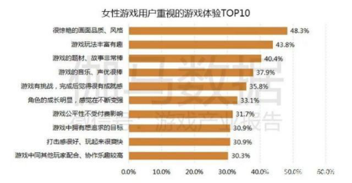 对于男女用户的调研发现,除了都特别重视"画面品质和风格"外,男女关注的点颇有不同。