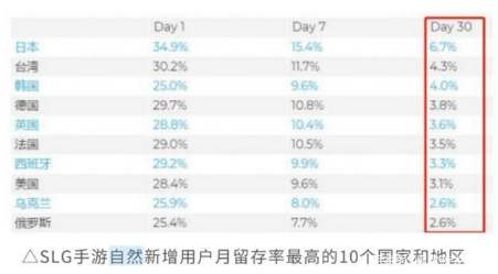 SLG手游留存率排名出炉,日本留存率最高!别再忽略用户细分问题