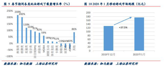 数字经济在春节期间显示出了强大活力,受春节期间各种客观环境影响,中信证券估算2020年一季度主要游戏公司业绩增速应该至少上调10%。上海证券也发布研报,显示春节期间手游收入规模同比增长32.9%。