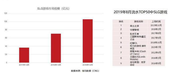 尤其是《率土之滨》,在策略游戏当中脱颖而出,不仅仅常年保持taptap高分之外,近一年来营收数据增长十分明显。根据权威数据《伽马数据》显示,SLG(策略)品类游戏在2019年1~8月,市场规模已经超过了100亿元,同比增长了50%,这种增长得益于SLG特有的长生命周期。老产品可以持续贡献流水,新游戏也不断实现创收。尤其是在8月份的流水上,《率土之滨》在SLG品类中脱颖而出,成为了SLG营收第一。