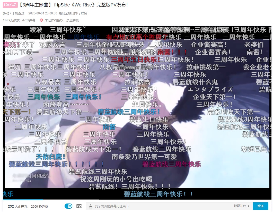 比如在三周年的活动中,最值得关注的有两个动作。一是邀请到了ACG圈极其知名的日本人气团体fripSide来演唱游戏的周年主题曲《We Rise》,不论是歌名还是歌词,都包含了对《碧蓝航线》崛起历程,以及玩家见证了这一历程的寓意,主打的是情感的强共鸣。
