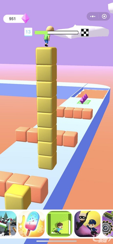 《Tower Run》跳跃叠高的玩法,也被修改创新成直接拼合叠高的方式,保留了障碍物设置以及最终的赛道奖励。玩法部分借鉴部分创新之外,将玩家角色和关卡障碍等元素全部由方块来代替,首先普通方块在3D建模时要比具体人物简单。