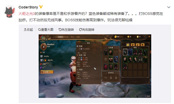 另一方面,也有玩家表示,《火炬之光3》总是或多或少带有一些手游观感。UI布局、一些界面的交互方式,或是一些细节的游玩反馈,都和前两作有明显反差。