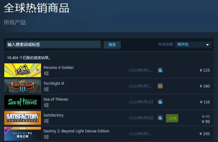 游戏在Steam上开启了Early Access,很快就冲上了全球热销榜的Top 2,一度直追《女神异闻录4》,凭借一天的销量就挤进了上周单周畅销榜的Top 10。