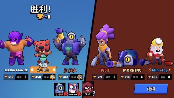 而在《荒野乱斗》的战斗里,玩家们互相之间只能看到对方的血条,只有在比赛结束后的结算界面里才会显示等级。