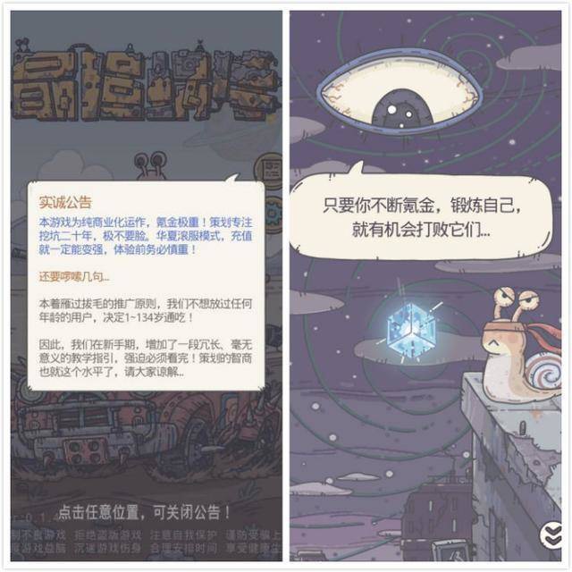 官方将此游戏设定为大众游戏,不分年龄性别,除了休闲玩家外,官方还设计了满足剧情玩家、硬核玩家等不同受众圈子的爽点。如剧情,主线剧情讲述一只弱小蜗牛通过不断变强,打败魔神,拯救地球的故事。乌托邦式剧情,还分为表世界和里世界。表世界则是游戏中的一些对话过场动画,里世界则是在不同系统、道具说明中,由文案构筑起来的散落剧情。