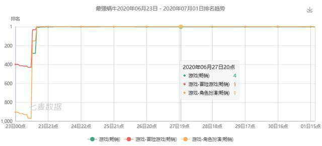 实力沙雕,尽力卖梗,这是上半年表现最无厘头的放置游戏《最强蜗牛》。2020年6月23日,这款由青瓷游戏自主研发的沙雕游戏上线首日登顶iOS免费榜榜首,打进苹果畅销榜前五。根据七麦数据显示,《最强蜗牛》上线10天iOS流水超1.04亿,截至目前iOS累计下载量约百万。