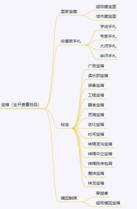 能够放置在导航栏中,宝箱在道具产出与消耗中发挥作用极大。宝箱分为国家宝藏、收藏家手札、秘宝、模因触媒。