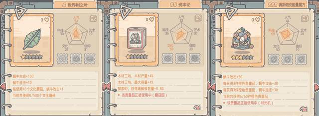 蜗牛属性相当于RPG的个人功能,汇集升级的重要几个放置养成系统:基因形态、装备、器官、罗盘和地区特技。将重要信息做整合的方法,便于玩家观察和操作。