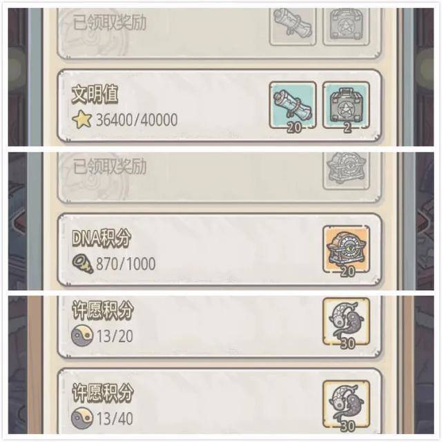 DNA反馈,玩家每做一次基因进化任务则获一点积分,满足不同的积分数量要求则获得不一样的奖励,以此来激励玩家。其他反馈亦是如此,以阶段性目标奖励为埋点,激励玩家一步步活跃下去。