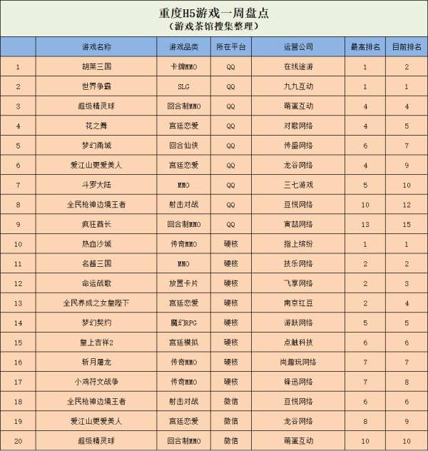 重度H5游戏:微信和QQ头部重度产品重合度高??硬核平台再现传奇类新品