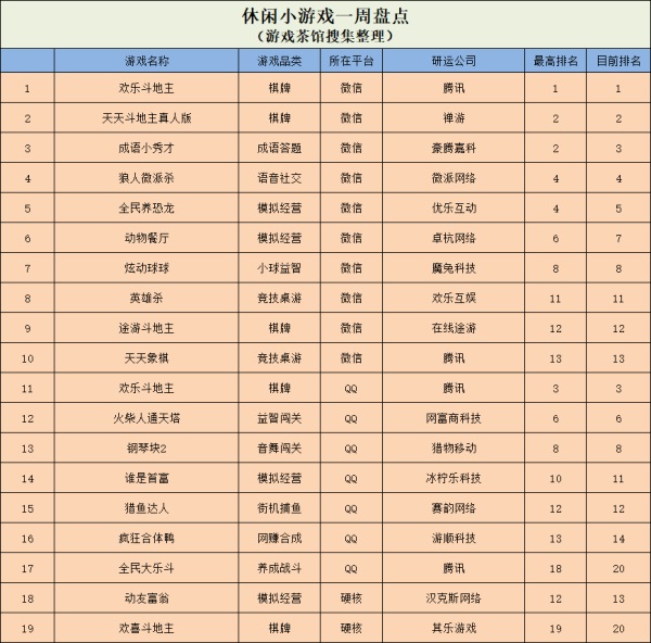 休闲小游戏:微信棋牌类产品表现稳定 《火柴人通天塔》进入QQ前十