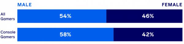 Newzoo 的分类研究表明,与时下流行的观点(含行业内外数据)相悖的是,42% 的主机游戏玩家为女性。但是,再看看很多主流主机游戏的营销活动,包括其创意和定位,我们不禁要感慨,难怪人们会认为只有男性才会购买游戏。