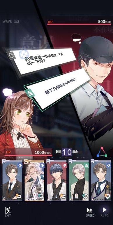 《未定事件簿》的战斗玩法设计的非常简单,以问答、辩论的场景,结合了卡牌阵容的属性克制,玩家要做的策略只有提前考虑好阵容的搭配,以应对不同属性的敌人。