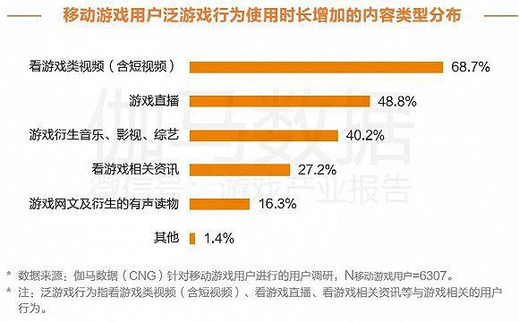 用户泛游戏行为,视频(含短视频)和直播占据前两名