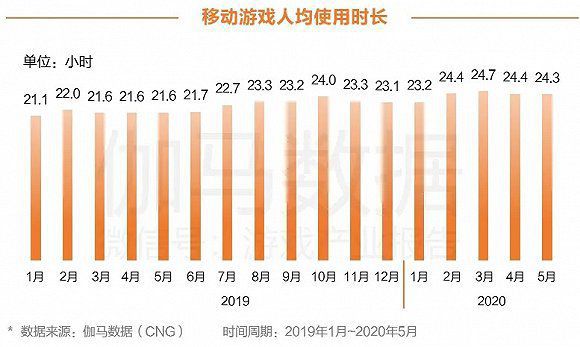 虽然移动游戏用户规模增速放缓,但从移动游戏人均使用时长变化情况来看,2019年起各月人均使用时长整体呈增长态势。