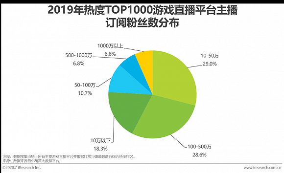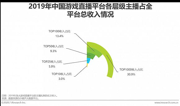 游戏直播平台主播收入及粉丝情况 TOP1000主播占31%收入,半数以上粉丝量超50万
