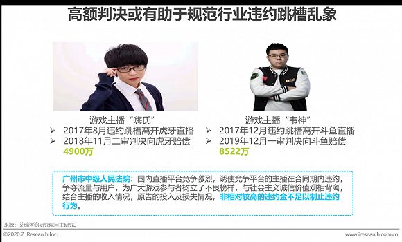 中国游戏直播平台主播竞争情况 直播违约判赔金额屡创新高,司法引导并规范主播竞争乱象