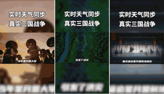 而对于《率土之滨》来说,面对竞品的模仿和跟进,选择将实时天气等独有的特色玩法细节单独抓取出来,通过广告向潜在用户扩散,也实现了和目标用户群体的高效对接。