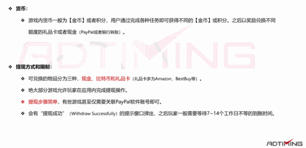 3. 玩法:基本上均为“积分墙+网赚”模式,即做任务得积分/金币,之后依靠奖励换取现金或者礼品卡。