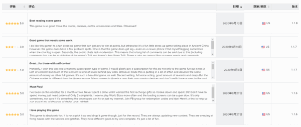 美国玩家对《宫锁心计》英文版的评价截图 | 数据来源:App Annie
