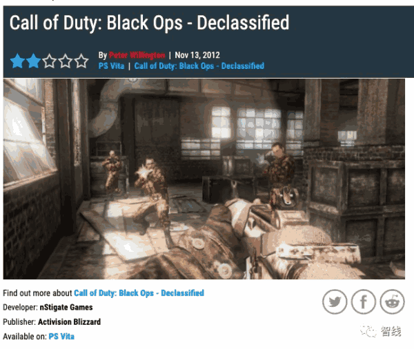 但是限于当时移动设备有限的机能、移动设备的普及率还有射击游戏在移动平台操作困难等原因,使得上面提及的移动化产品的销量和影响都跟正代的产品相距甚远,尤其是PSV上的【使命召唤:解密】,这款12年发布的游戏一上线就由于其糟糕的手感、莫名其妙的BUG和令人抓狂的AI而得到了极多的差评,甚至有媒体给该游戏打了2星的低分,也使其成为使命召唤历史上评价最差的游戏产品,糟糕的表现更是让PSV主机在欧美市场的生命周期大幅缩短。