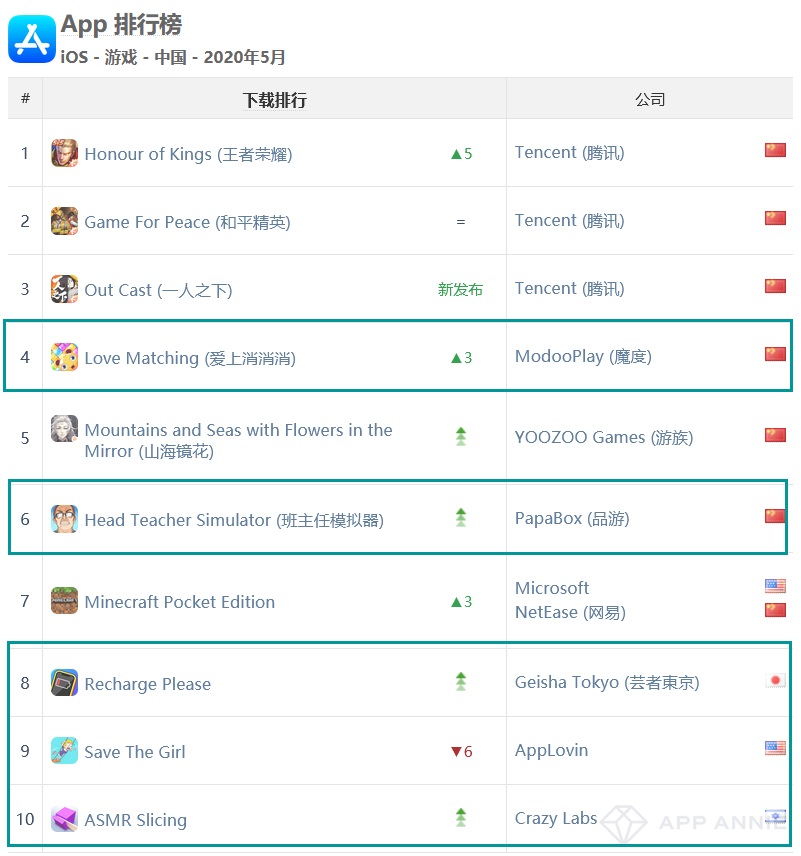 今年以来,国内休闲游戏市场出现了更多的爆款,App Annie的月度手游指数报告中,iOS中国游戏免费榜TOP10里常有过半游戏为休闲类型。