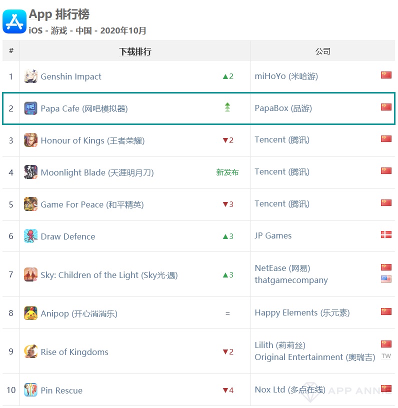 得益于“十一”这波大推,《网版模拟器》在整个十月份的吸量表现都非常不错。App Annie数据显示,《网吧模拟器》拿下了10月iOS中国游戏下载榜TOP2的位置,也是TOP5行列里唯一一款休闲游戏。