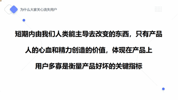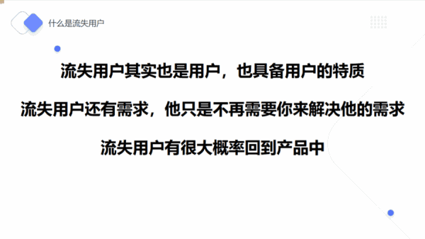 根据我们刚才提到的需求共性,这些流失用户其实在流失前对我们的产品是有很高的需求认可度的,并且他们已经体验过这款产品,相比我们重新做新增、做新用户教育,召回流失用户的成本更低,他们对产品有着非常高的价值。