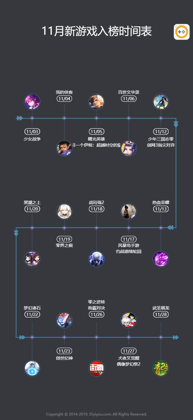 三、11月份新游戏入榜时间、新游Top10以及新游类型分布