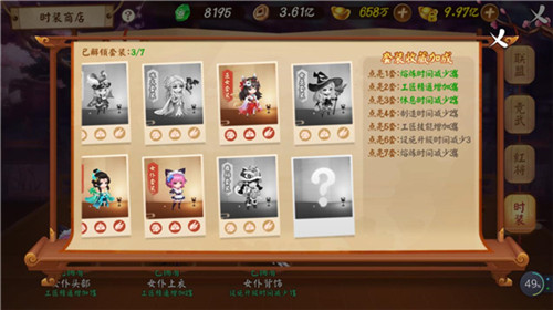 除了单套时装所带来的加成之外,时装系统中还有一个令人值得称道的功能,那就是套装图鉴。只需要收集足够数量的时装,就能解锁时装收藏加成,获得额外的技能效果,如点亮一套时装就能获得熔炼时间减少3%的加成,并且可以进行效果叠加。这对于广大收集控玩家可是福音,即能满足自身的收藏心理,又能提高自身实力,何乐而不为呢。