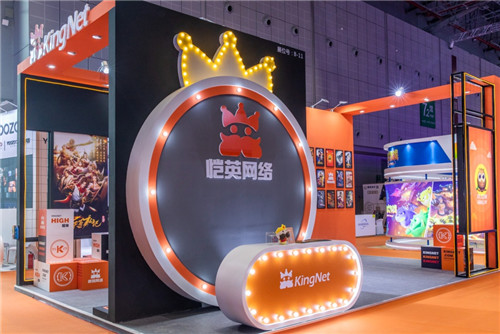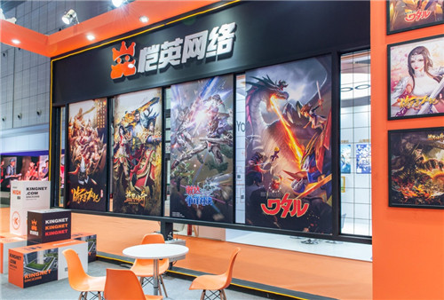 恺英网络选择了公司logo衍生形象作为展台主造型,另外在空间设计上也看得出下了不少功夫,让人眼前一亮的配色更给展台加分不少,总体来说一眼就能让人看出这是一家游戏公司。